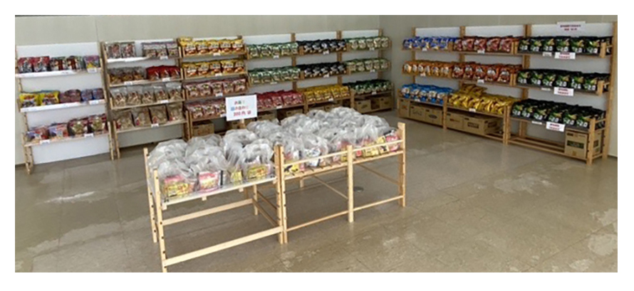 同社のポテトチップス製品を中心に、その他菓子類や、タイミングによっては馬鈴薯などを販売することも。