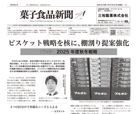 主な記事… ▪️ビスケット戦略を核に、棚割り提案強化 ブルボン 2025年度秋冬戦略/4つの区分けで多様なニーズとらえる――ビスケット/ビスケットメーカーとしての知見を活かす――チョコレート/常時24品の強み活かす『プチ』 グミは2品追加/フェットチーネグミ、記念コラボ実施――広告宣伝...