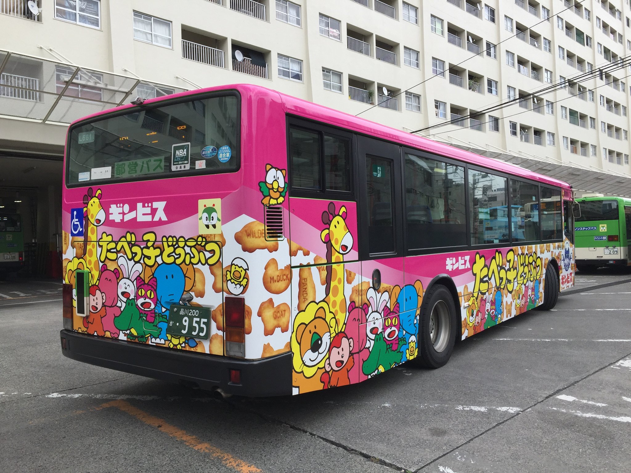 都営バスの渋谷〜六本木間でブランドキャラクターをデザインしたラッピングバスを10月末まで運行する(写真上)。SNSでは、「幼稚園のバスみたいで超かわいい」「テンションがあがった。子供の頃、たべっ子どうぶつ大好きでした」等の投稿で盛り上がっている。