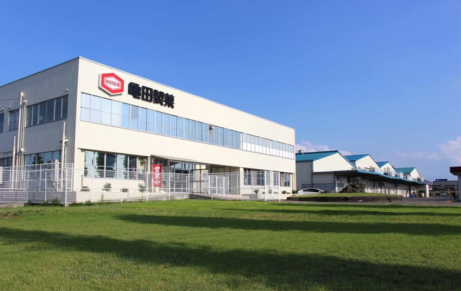 =水原工場の概要= 所在地・新潟県阿賀野市、敷地・45,136㎡、工場建坪・37,000㎡(2階建ての総床面積は敷地とほぼ同程度)、従業員数・426名(正社員68%、再雇用15%、パートナー社員9%、パート社員8%、平均年齢45.5歳)、操業形態・3交代、24時間操業、認証登録・FSSC22000、ISO14001取得、生産品目・うるち系=『ハッピーターン』『手塩屋』『ソフトサラダ』を主体に、餅系=『海老のりあられ』『通のえだ豆』『将角』『サラダホープ』や、季節の味変え製品を生産(生産量は年間180億円相当)