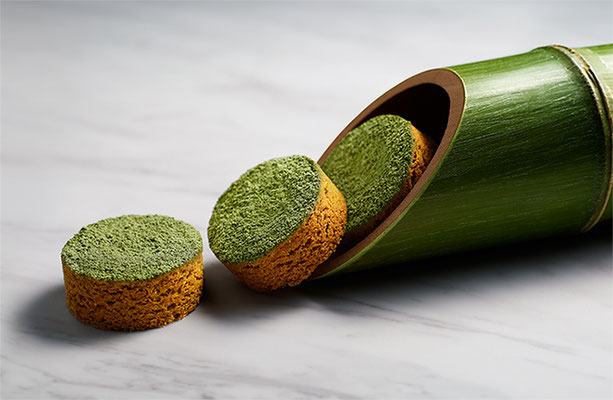 第2弾となる今回は、全国各地で「放置竹林」が増加し社会問題となりつつある「竹」にフォーカス。新進気鋭のシェフ薬師神陸氏と『Bamboo Galette 竹害から生まれたガレット』を開発した。原料には福岡県にある放置竹林の竹と笹を約24%使用。サクサクとした竹の食感と、竹とバターが生み出す香ばしさで、アクセントには、笹塩と柚子を合わせている。