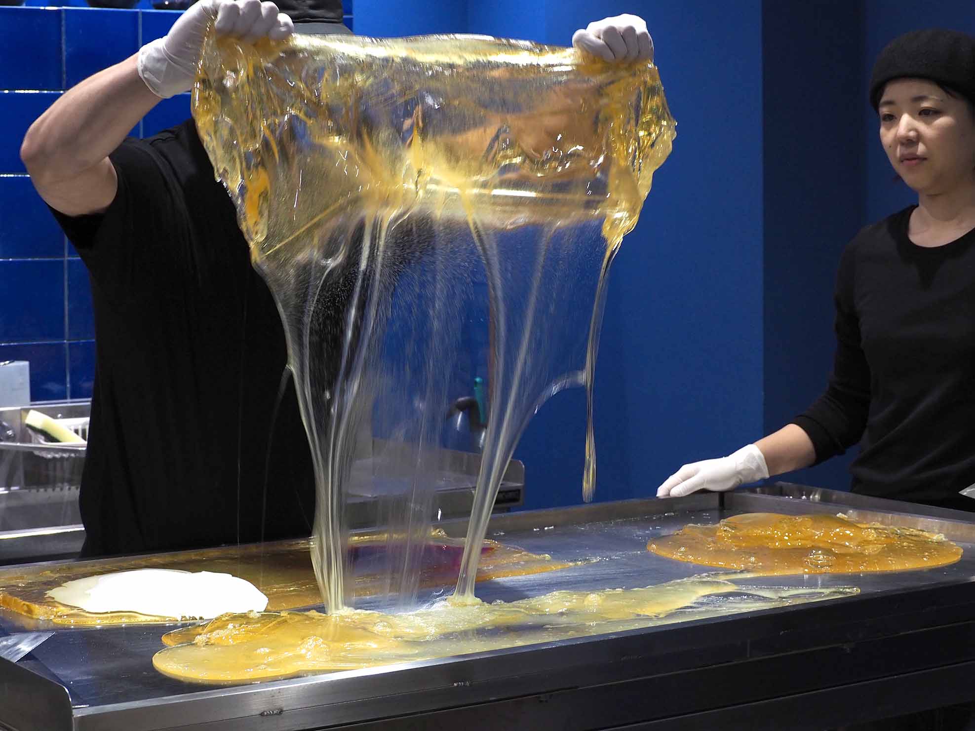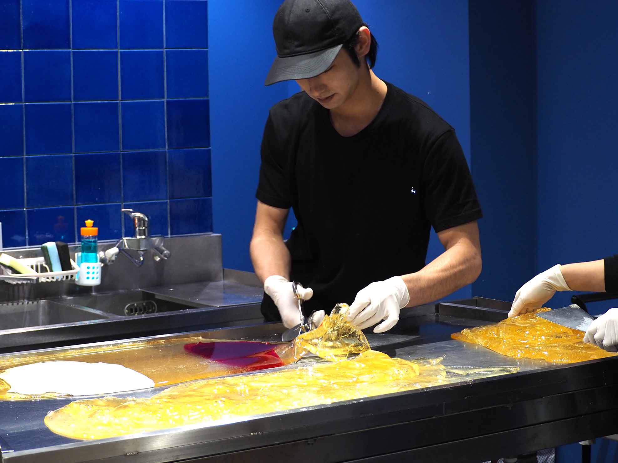 「世界一おもしろいお菓子屋さん」をコンセプトに体験型アートキャンディーショップを全国に展開するPAPABUBBLEは2月26日、PAPABBLE青山店でプレス向けアートキャンディパフォーマンス体験会を開催した。当日は、飴職人による華麗なパフォーマンスを披露。集まった人々を魅了した。