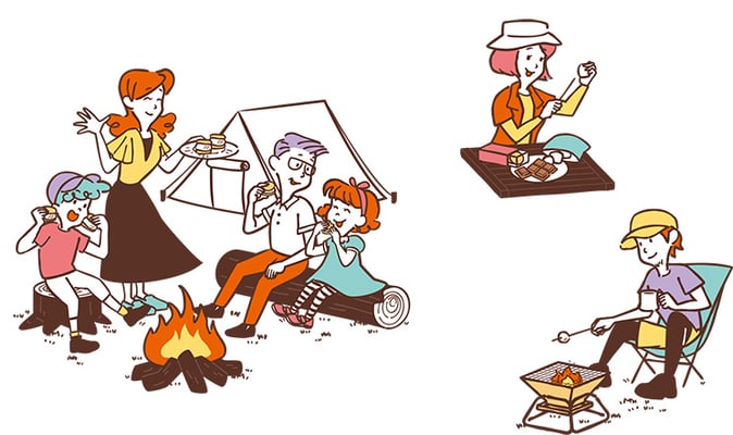 近年、キャンプやバーベキューの人気のデザートとして、マシュマロをアレンジした「スモア」の認知度が広がっている。「スモア」とは、焼いたマシュマロをチョコレートと一緒にクラッカーやビスケットで挟んで食べるお菓子。あまりの美味しさから思わず「some more(おかわり)」と言ってしまうことから、その短縮形である「S'more(スモア)」と呼ばれている。