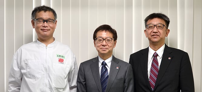 左から、統括工場長の名澤博行氏、取締役製造本部長の佐藤博久氏、生産統括部長の玉川勝之氏
