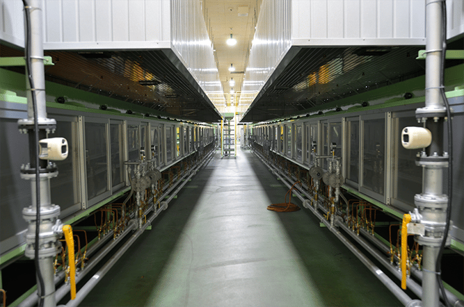 40メートルあるオーブン(焼き窯)。最新設備による冷却効果は非常に高い。作業従事者にやさしい設計となっている