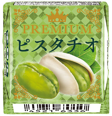 ミルクチョコの中にピスタチオを丸ごと一粒入れており、ピスタチオ風味クリームとともにピスタチオの風味が口の中いっぱいに広がる。1個・税込参考価格45円。