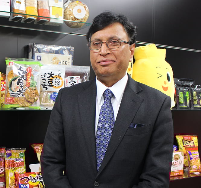 亀田製菓が長期ビジョン「グローバル・フード・カンパニー」の実現に向けての取り組みを加速させている。その旗振り役が、6月14日付けで同社代表取締役会長CEOに就任したジュネジャ・レカ・ラジュ氏である。米菓業界初となるインド出身のCEOジュネジャ氏に、亀田製菓における使命や食品事業にかける思いを聞いてみた。