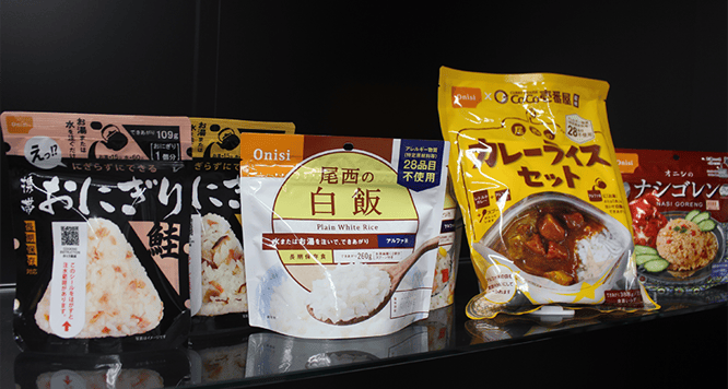 国産米100%使用をはじめ、28品目アレルゲンフリー、ハラール認証の商品など、多様なニーズに対応した製品を展開する。大地震やゲリラ豪雨など、災害による自治体や民間企業への納入はもちろんのこと、個人の備蓄や、登山者、海外旅行者の行動食など、広く利用されている。