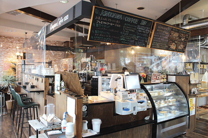 カフェのカウンター席で、作り立てのケーキやかき氷を、これまた淹れたての『キヌガワコーヒー』とともにオシャレに楽しめる