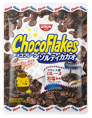 塩味を効かせたビターチョコレートでサクサク食感のコーンフレークをコーティングした、『チョコフレーク』の期間限定品。フランス産のロレーヌ岩塩がマイルドなビターチョコの甘みを引き立てる、甘じょっぱくてクセになる味わいが特徴。白、赤、青を基調とした爽やかで上質感のあるパッケージデザインを採用している。65g、120円。