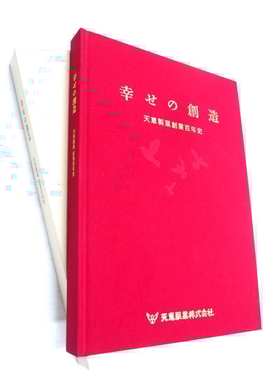 因みに『幸せの創造』は、第5工場前に、設けられた創立100周年記念碑に刻まれ、周年記念誌(写真下)のタイトルにもなっている。