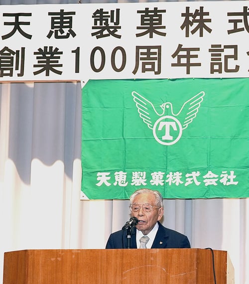 半生菓子のリーディングカンパニーである天恵製菓(長野県豊丘村、片桐義宣社長)は7月15日、創業100周年の記念式典を、地元飯田市座光寺の「エス・バード」で、来賓や社員を含め約180名を招き挙行した。