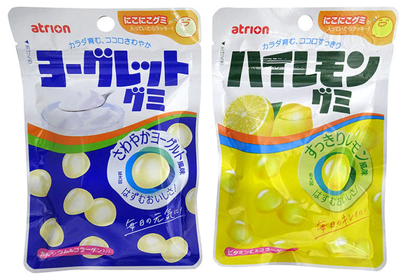 もう2品は、旧社時代からのロングセラー、タブレット菓子『ヨーグレット』『ハイレモン』のグミ(各51g、同140円)である。キャッチコピーに「カラダ育む、ココロすっきり」とあるように『ヨーグレットグミ』はコラーゲンとカルシウム。『ハイレモングミ』にはビタミンCとコラーゲンが配合されている。