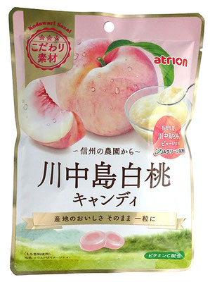 この『こだわり素材』シリーズには先行製品の『シャインマスカットキャンデー』がある。同社の地元須坂市と地元JAがブランド化を進めている「シャインマスカット」を使用したもの。本品はその第2弾として、スタッフが川中島白桃に狙いを定め、熱心にJAグリーン長野に働きかけ、実現に漕ぎつけたものだ。